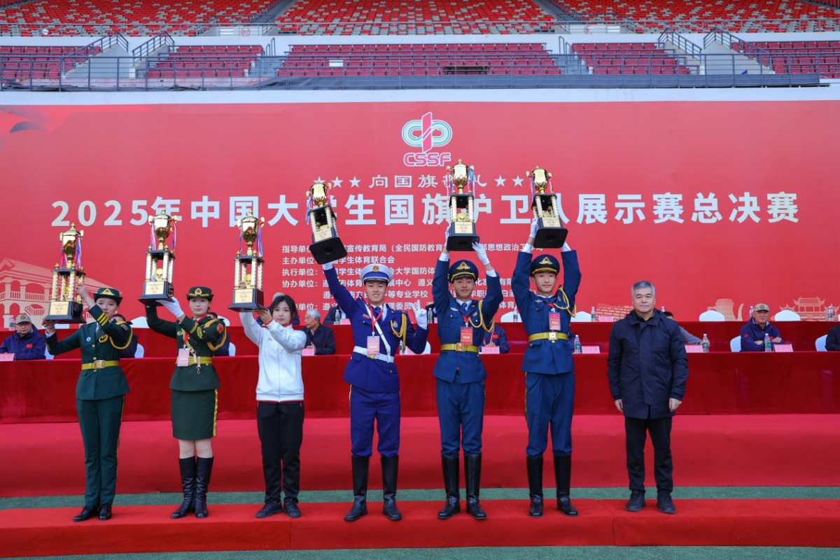 11月24日至11月28日,由中国学生体育联合会主办的2025年中国大学生国旗护卫队展示赛总决赛在贵州遵义圆满落幕。我校国旗护卫队表现优异,一举夺得本科男子组、混编组两项全国冠军,同时斩获四个单项一等奖。赛场上,队员们精神抖擞、斗志昂扬,以规范标准的动作、整齐划一的步伐和铿锵有力的口号,完美展现了我校国旗护卫队的飒爽英姿与过硬作风,赢得了评委与观众的高度赞赏和评价。